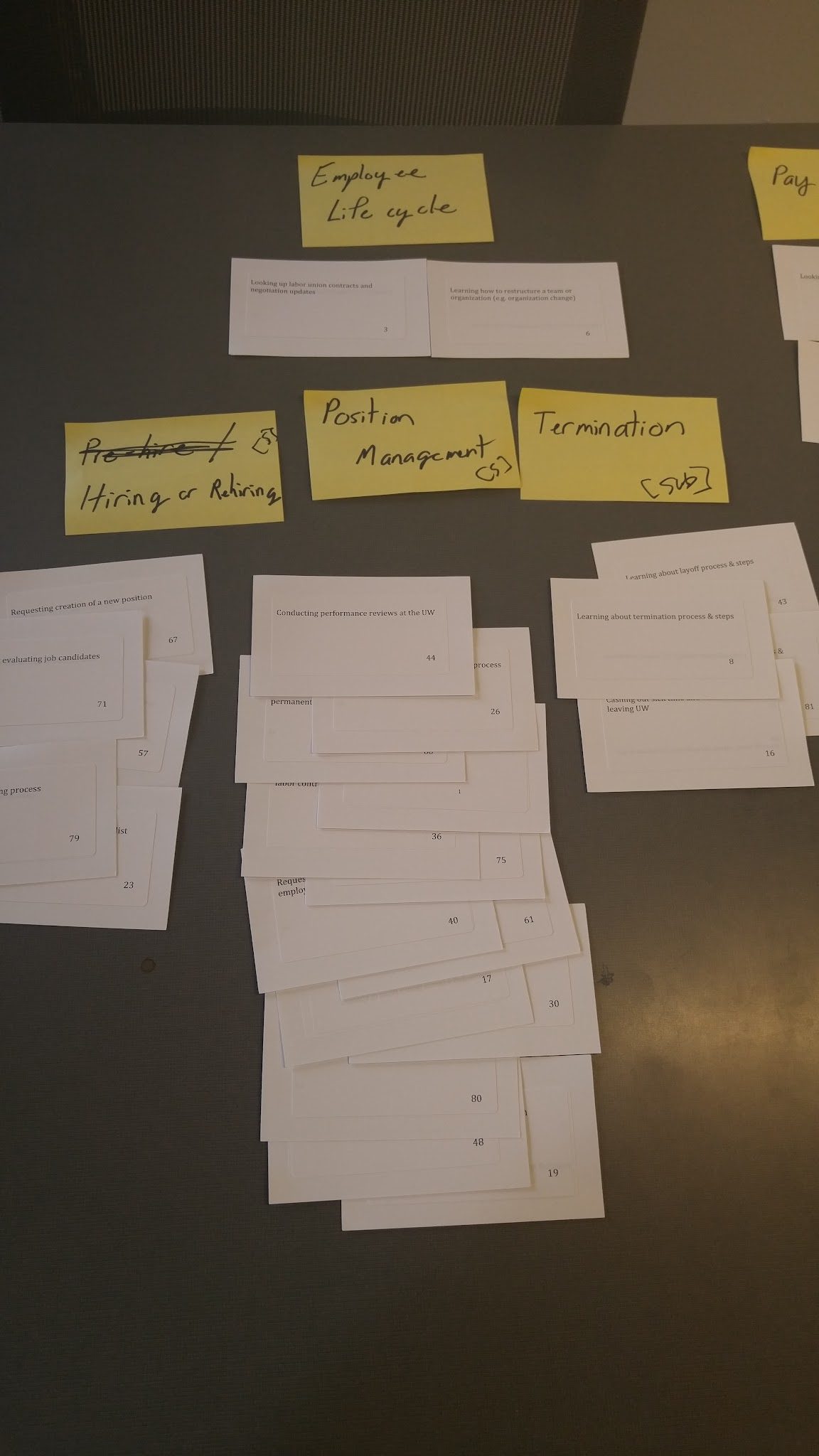 There were still a lot of questions, so we put together an old-school card sort – with physical cards and everything – in order to get a broader view. (And because we were using fellow employees as the participants, it didn’t cost us nothin’!)